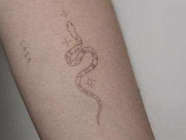 Janka liebt feine Linien, klare Formen und starke Weiblichkeit. Ihre Tattoo-Kunst ist geprägt von Minimalismus und abstrakter Ästhetik – zart, reduziert und doch voller Ausdruck. Am liebsten arbeitet sie an Projekten, die eine persönliche Bedeutung haben und gleichzeitig Raum für Interpretation lassen.